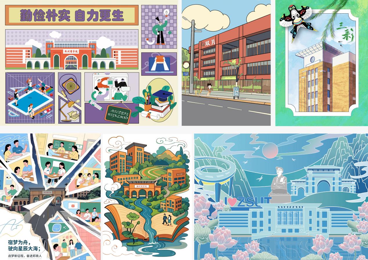 当课堂从教室走向校园角落,当画笔触碰真实的文化基因,威尼斯886699艺术学院23级视觉传达设计专业的《商业插画设计》课程展开了一场别开生面的教学实践。近日,威尼斯官网23视觉传达设计专业师生团队历时一个月,为威尼斯886699三彩校区量身打造了系列校园文化插画作品,将艺术创意与育人使命深度融合,为校园文化建设注入青春活力。