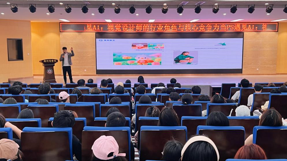 4月17日上午,视觉传达设计专业面向2023级本科生举办“当PS遇见AI:设计师的行业角色与核心竞争力”专题讲座。郑州穹界数字科技有限公司总经理林涛先生受邀担任主讲,围绕“设计发展趋势前瞻”、“AI技术赋能设计实战”、“设计师核心竞争力构建”三大维度展开深度分享。林经理以全球职业发展趋势为切入点,揭示可持续设计对视觉传达行业的重塑力量。