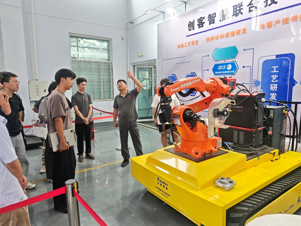 参观完生产车间,公司技术人员又带领大家参观了公司的产品展厅,对公司主要在售产品、科技前沿产品进行了详细的介绍,对公司电焊机器人的发展做出展望,希望通过同学们的设计力量来推动公司产品的升级,进而推动整体品牌的升级,向更高端的市场进军。