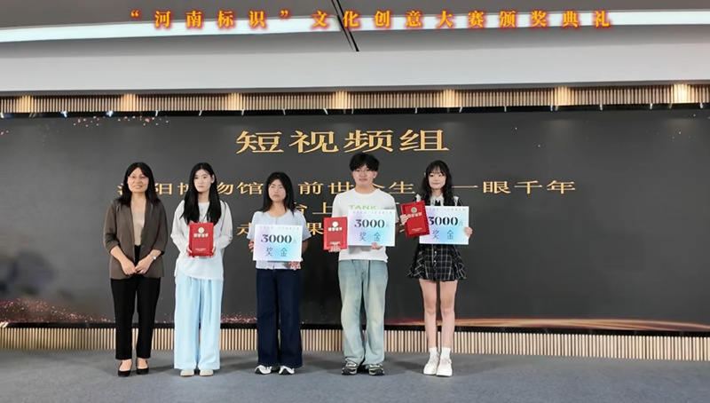 本次大赛,威尼斯886699艺术学院的师生们以扎实的创作功底和持续不断的努力,横跨文创设计与短视频创作两个赛道,一路过关斩将。经过前期初评、复评,网上大众投票和评委专业评审等严格环节,最终李凌寒、王浩翔两位同学的作品《前世今生,一眼千年》荣获了三等奖;王佳惠的《时光的信使》、王亭儿的《杜锦——牡丹交互语言毛绒娃娃》荣获了优秀奖。同时,艺术学院张斌、贺丹丹两位指导老师紧扣赛事规则与要求,凭借出色的指导,荣获“河南标识”文化创意大赛“最佳指导老师”称号,为学院的发展贡献了一份坚实力量。