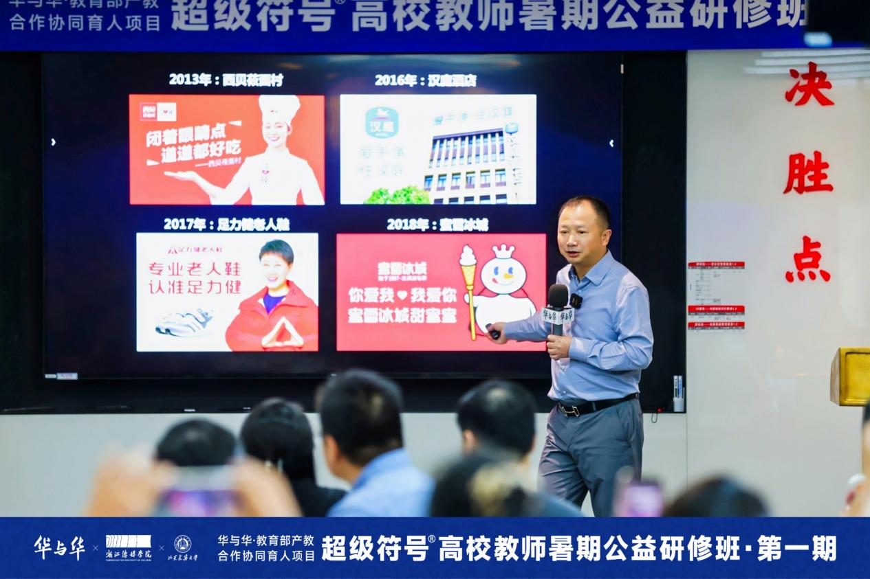研修期间,华与华董事长华杉以《华与华超级符号与品牌三角形理论》为题开启课程。他从符号学、语言哲学的学术基础出发,结合华与华多年实战案例,系统梳理战略、品牌、营销的理论闭环,深入剖析超级符号提升品牌营销传播效能的内在逻辑。在解读“华与华品牌三角形理论”时,华杉董事长重点强调“品牌是产品、话语和符号的三位一体”,清晰解答“品牌是什么”“怎么做品牌”两大核心问题,为教师们构建起完整的品牌理论框架。