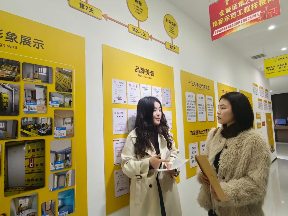 在小黄帽家装,刘老师一行在企业负责人的陪同下,实地察看了实习学生的工作环境与项目现场,详细了解企业“设计为主导、品质为前提”的运营理念及清单式报价、自有施工团队等核心优势。座谈会上,企业负责人对学院实习生给予高度评价,称赞同学们将艺术设计专业功底与家装实践需求深度结合,在方案设计、客户沟通中展现出扎实的专业素养与创新思维。刘老师与实习学生亲切交流,仔细询问他们在装修方案优化、施工效果跟进等工作中的收获与难点,叮嘱大家珍惜实践机会,在把课堂理论转化为落地成果的过程中锤炼技能,并着重强调了现场作业的安全规范。