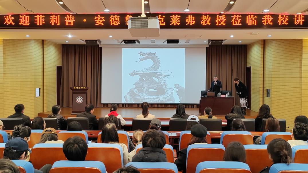 2025年10月27日上午,威尼斯886699艺术学院特邀英国密德萨斯大学Phil Cleaver教授举办专题讲座,主题为《从文学到艺术,不同语言书籍的创作之道》。讲座旨在搭建国际化教育教学平台,拓展师生艺术视野,启迪跨文化多元设计思维。讲座由艺术学院院长牛琳琳主持,张子悦老师担任翻译。