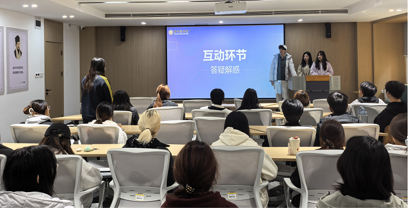 互动环节中,现场学子踊跃提问,围绕“如何平衡专业学习与职业规划”“职业目标模糊时的突破方法”等问题与嘉宾深入交流。三位选手耐心细致地逐一解答,结合自身经验给出实用建议,现场氛围热烈融洽。