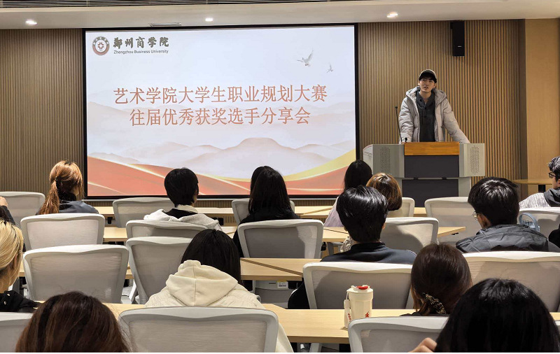 分享会上,三位优秀选手结合自身参赛经历与职业发展历程,从不同维度展开分享。王同学以“画笔绘就职业蓝图”为主题,讲述了自己如何将专业优势与文化艺术行业需求结合,从明确 “成为专业策展人” 的职业目标,到通过职业规划大赛梳理成长路径。她特别提到,艺术生的职业规划需注重 “专业性” 与 “创新性” 的融合,建议学弟学妹在大学期间多参与艺术展览策划、跨界设计项目,用实践为职业规划 “打底”。李同学聚焦“赛事备赛全流程攻略”,分享了PPT制作、现场答辩的实战经验,针对备赛过程中常见的难点误区提供了具体解决方案。潘同学则从“规划落地与动态调整”出发,结合自身比赛经历,阐述了如何将职业规划与个人发展、行业趋势相结合,实现规划与实践的良性互动。