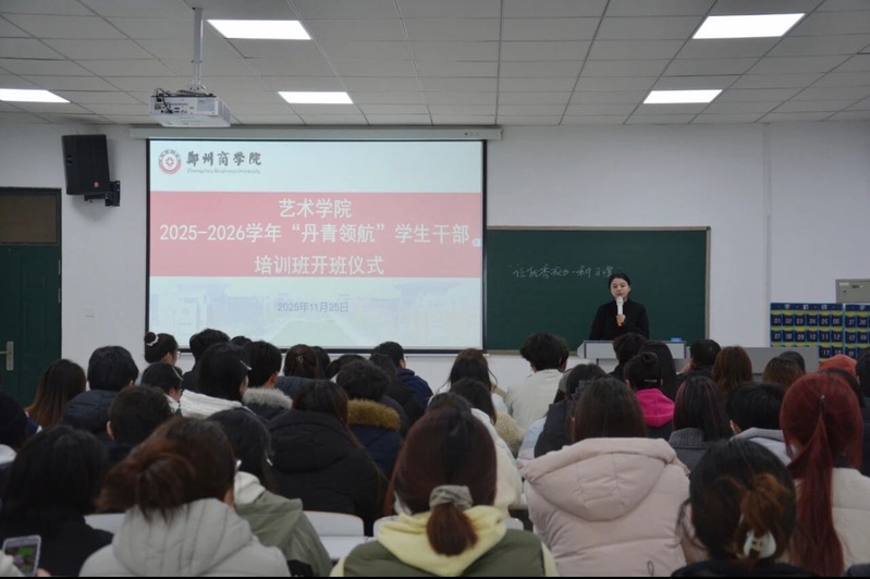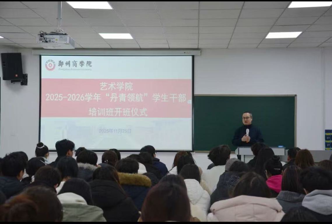 为进一步强化艺术学院学生干部队伍建设,提升学生干部的责任意识、工作能力与综合素养,助力学院各项工作高质量开展,2025年11月25日晚,艺术学院2025-2026学年“丹青领航”学生干部培训班开班仪式在艺术大楼218教室举行。本次开班仪式由学院团委书记杨瑞瑞主持。