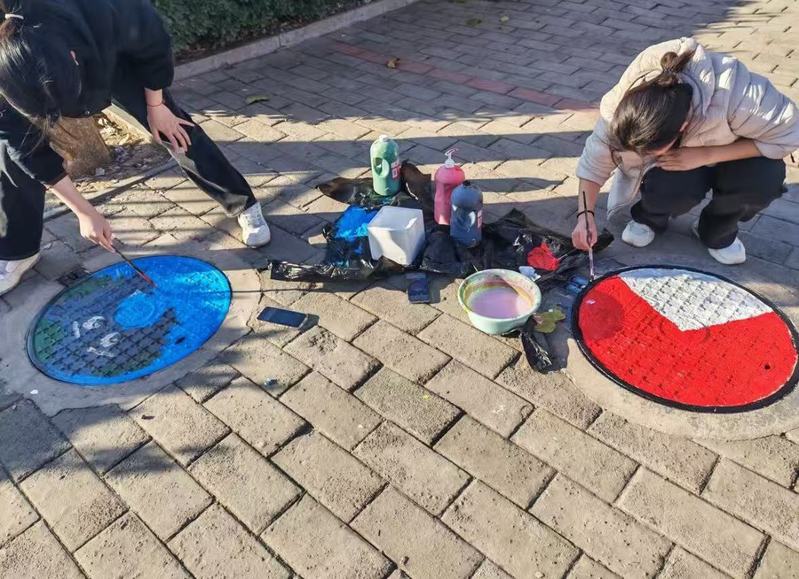 在这个充满无限可能的时代,每一笔色彩都是青春的注脚,每一次创作都是心灵的绽放。GO DREW涂鸦社举办了“妙笔涂鸦,‘井’上添花”主题绘画活动,同学们在艺术大楼前后参与了井盖涂鸦,为校园的角落增添了一抹色彩。