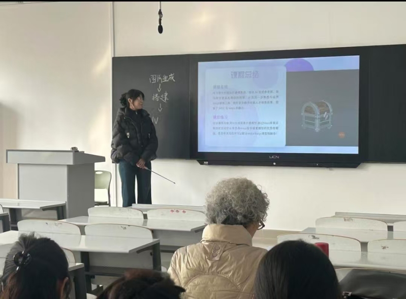动画教研室王佩琪老师在《三维模型》课程中系统讲解了从基础命令到复杂模型构建的教学设计与实操演示,杜岱颖老师在《三维特效》课程中通过片段教学展示了如何引导学生理解粒子系统的原理并创建基础视觉特效。两位教师的汇报均注重理论讲解与软件实操相结合,突出了课程的技术实用性与创意启发性。